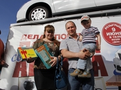 Но все, конечно, ждали машину. Любимцем фортуны и обладателем новенького автомобиля Ниссан Альмера стал Гребенников Владимир Николаевич! Сдержанный и серьезный Владимир Николаевич даже слово не смог сказать от неожиданного подарка, а вот жена и дочка радовались по-настоящему. Кстати, семья Гребенниковых большая, пять детей, десять внуков, так что будет кому ездить на новеньком авто. Поздравляем! Все по-честному, у всех на глазах в присутствии тиражной комиссии! В заключении розыгрыша присутствующих порадовали песни иркутского исполнителя Франсуа покорившего публику, еще бы чернокожий артист в нашем Ангарске не каждый день бывает.